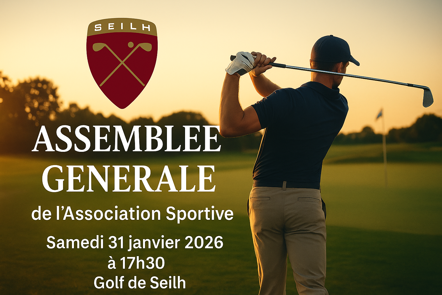 2026-1-31 17:30 2026-1-31 20:00 Europe/Paris Assemblée Générale de l’Association Sportive : Saison 2025/2026 l'Assemblée Générale de l'Association Sportive du golf de Toulouse Seilh samedi 31 janvier 2026 de 17h30 Golf de Seilh, route de Grenade, 31840, SEILH