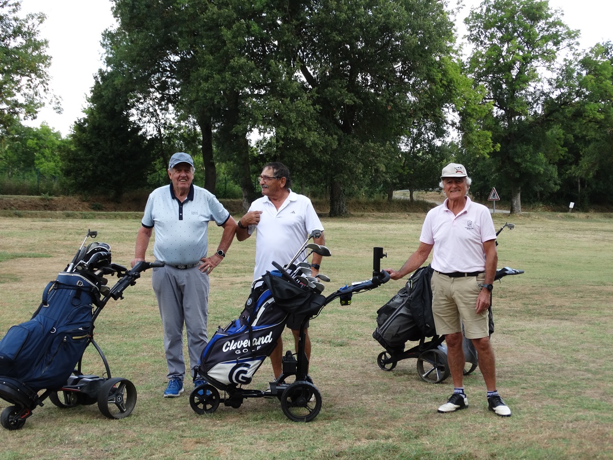 Un vrai temps de golfeur ce vendredi matin à LAS MARTINES, légère brise et un petit café pour se réchauffer avant le départ. A 8h30 la corne donnait le coup d’envoi aux 9 parties pour ce shamble en équipe de 3 et concours d’approche sur le trou 9. Nicole découvrait son “cheval blanc” pour parcourir les fairways 🥰