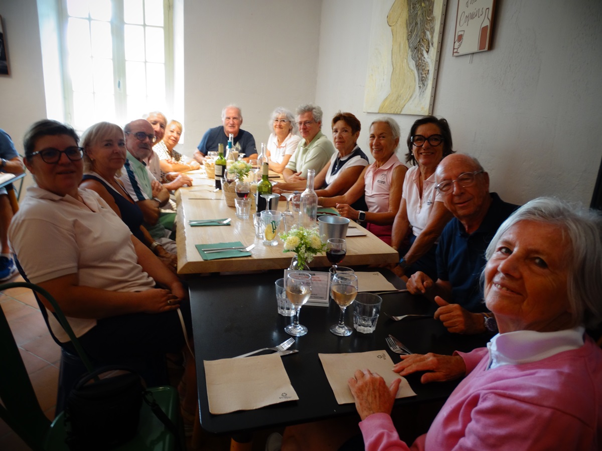 Même si le parcours n’était pas au top avec des greens un peu “malades”, c’est sous un beau soleil que les joueurs ont terminé la partie. Petit débat pour savoir si on déjeune dedans ou dehors , finalement ce sera un peu des deux , entrée plat à l’intérieur “collé/ serré” et dessert et café en terrasse sous la brise .