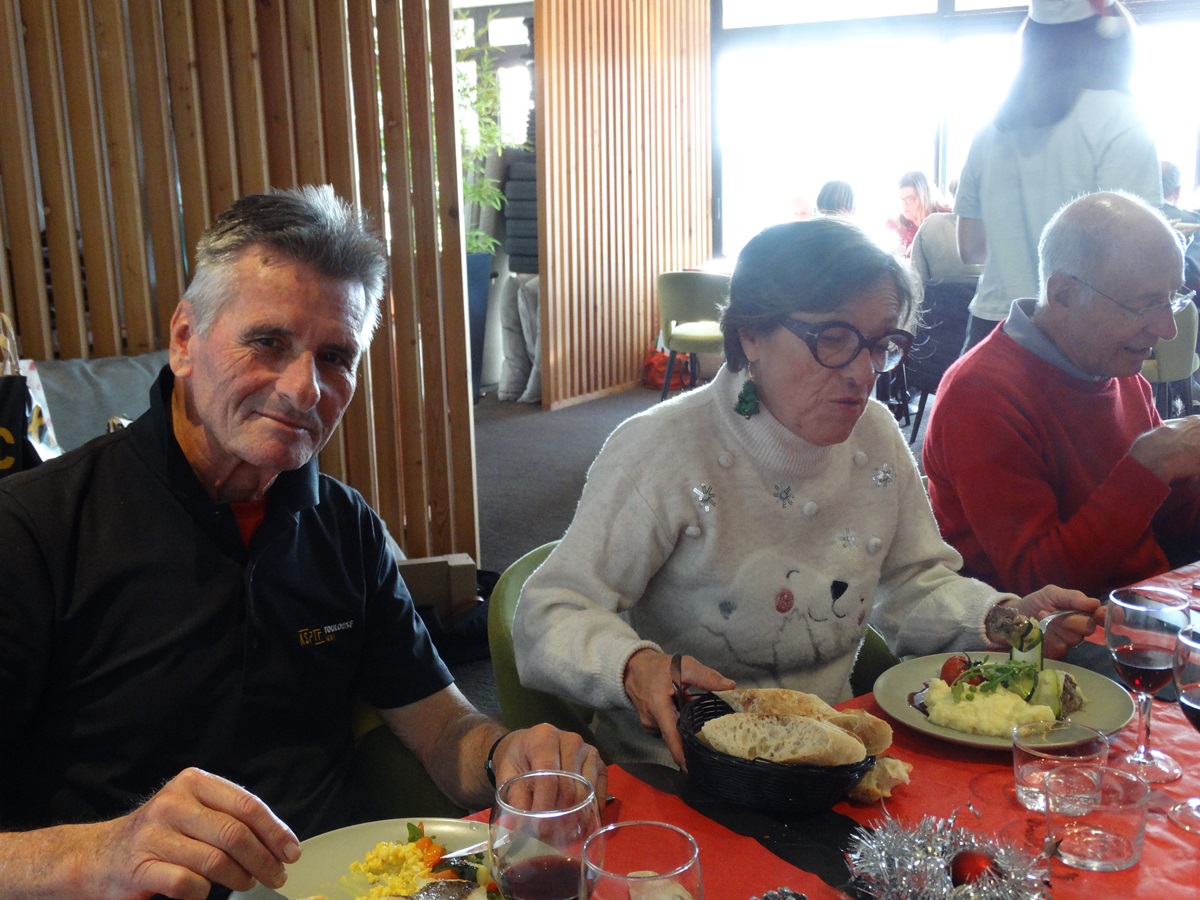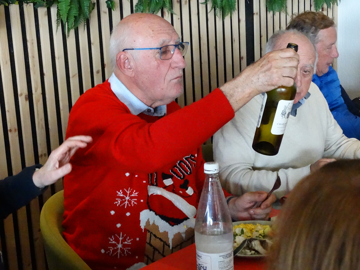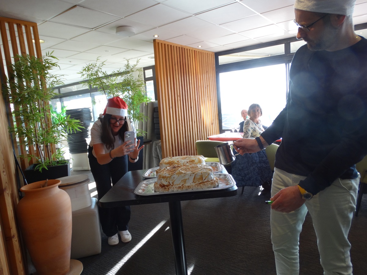 Belle ambiance et belle rigolade mais c’est l’heure de passer à table. Un repas de fête sera servi , fort apprécié de tous et surprise au dessert Julien viendra faire flamber les omelettes Norvégiennes , un délice !