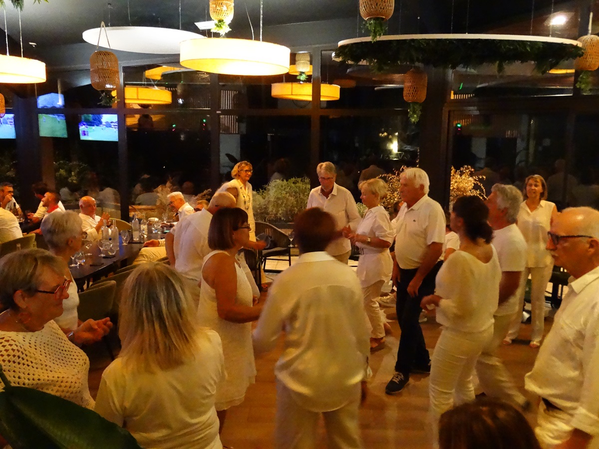 Nous nous sommes ensuite retrouvés autour d’un repas animé en musique par Alexandre le DJ, ou certains ont retrouvé leur jeunesse sur des rocks et twists des années 60. Et les plus jeunes ont pu se dégourdir aux alentours de minuit avec des morceaux plus contemporains
